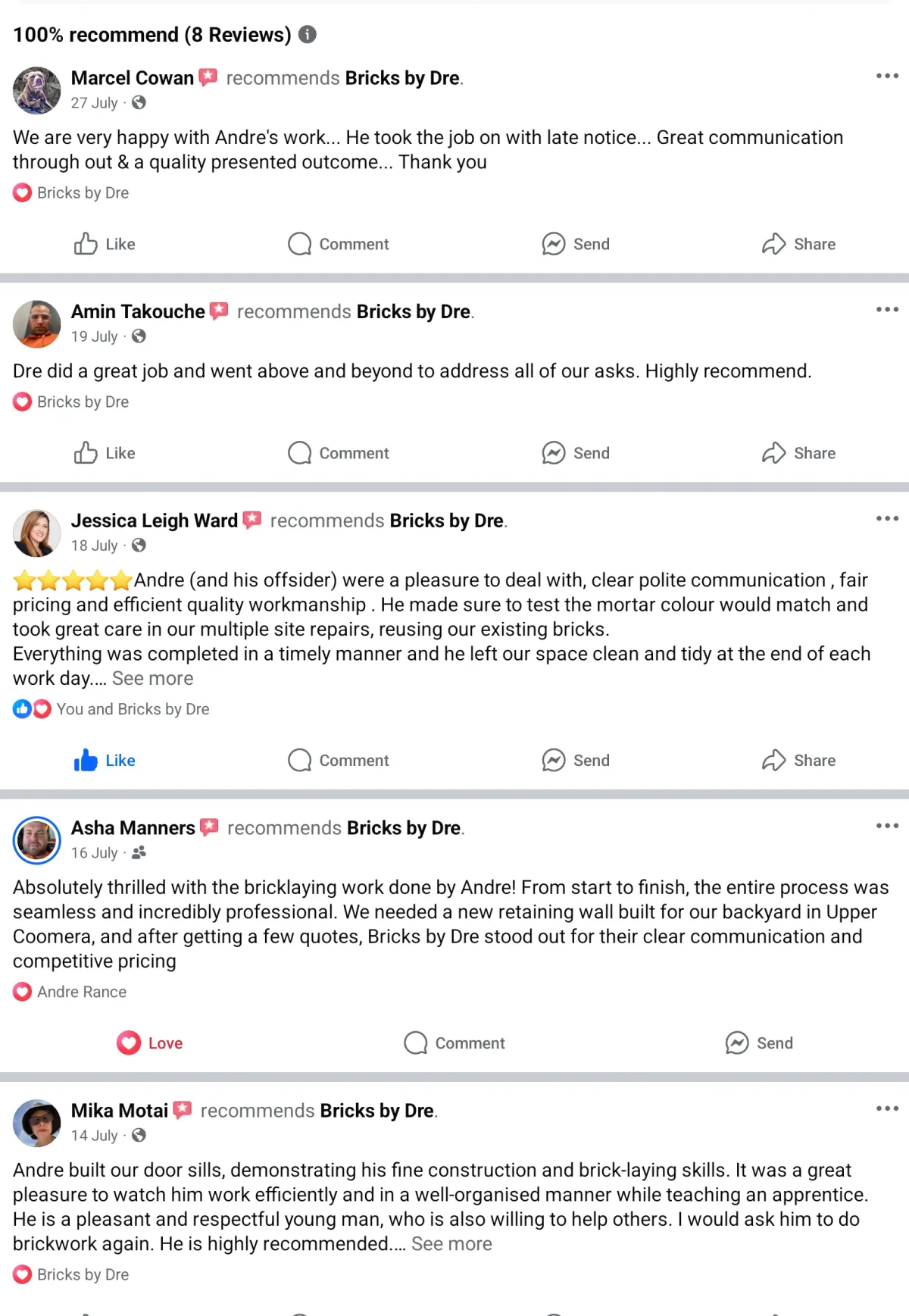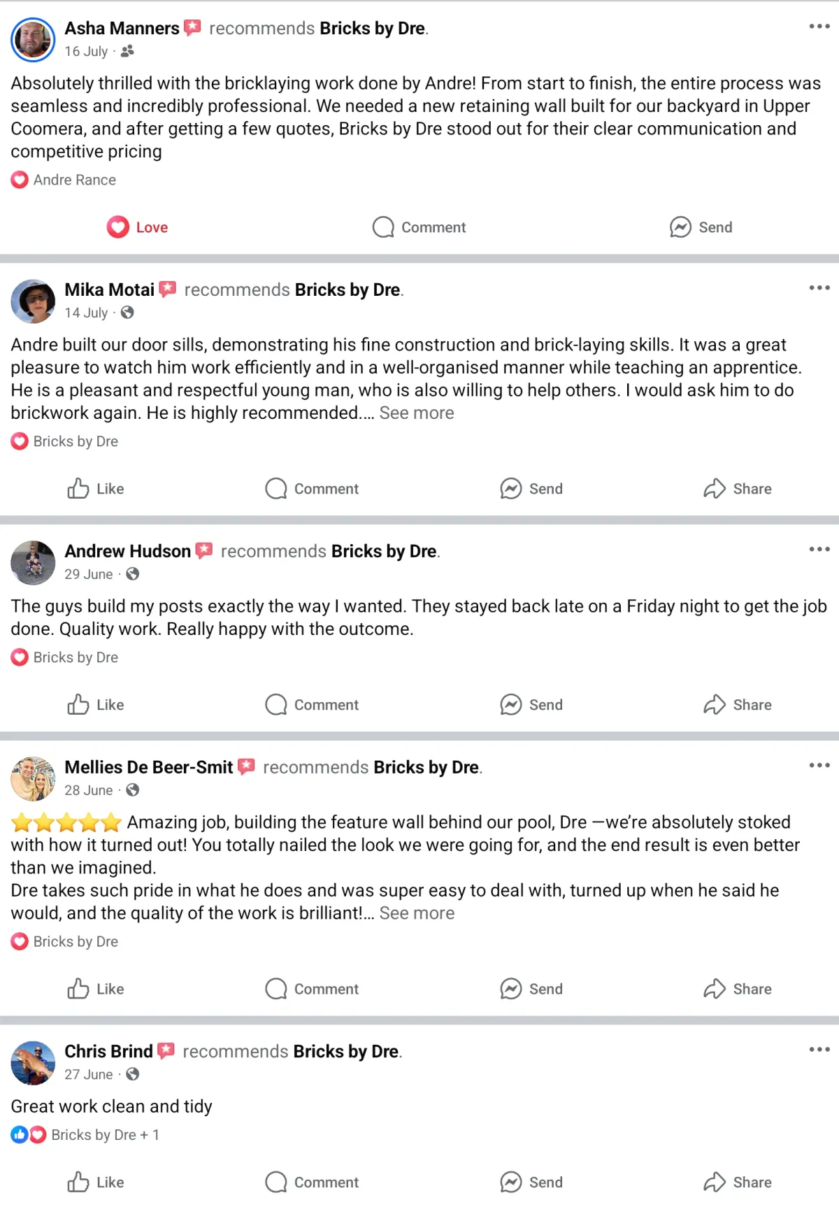 Bricks By Dre specialises in small to medium brickwork jobs that other tradies often overlook.